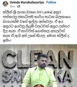 ජනාධිපති අනුර කුමාර දිසානායක මහතා සමග සමීප මිත්රත්වයක් පවතින මාධ්යවේදී උවිදු කුරුකුලසුරිය මහතා තම සමාජ ජාල ගිණුමේ විවේචනාත්මක අදහස් කිහිපයක් පළ කර තිබේ.